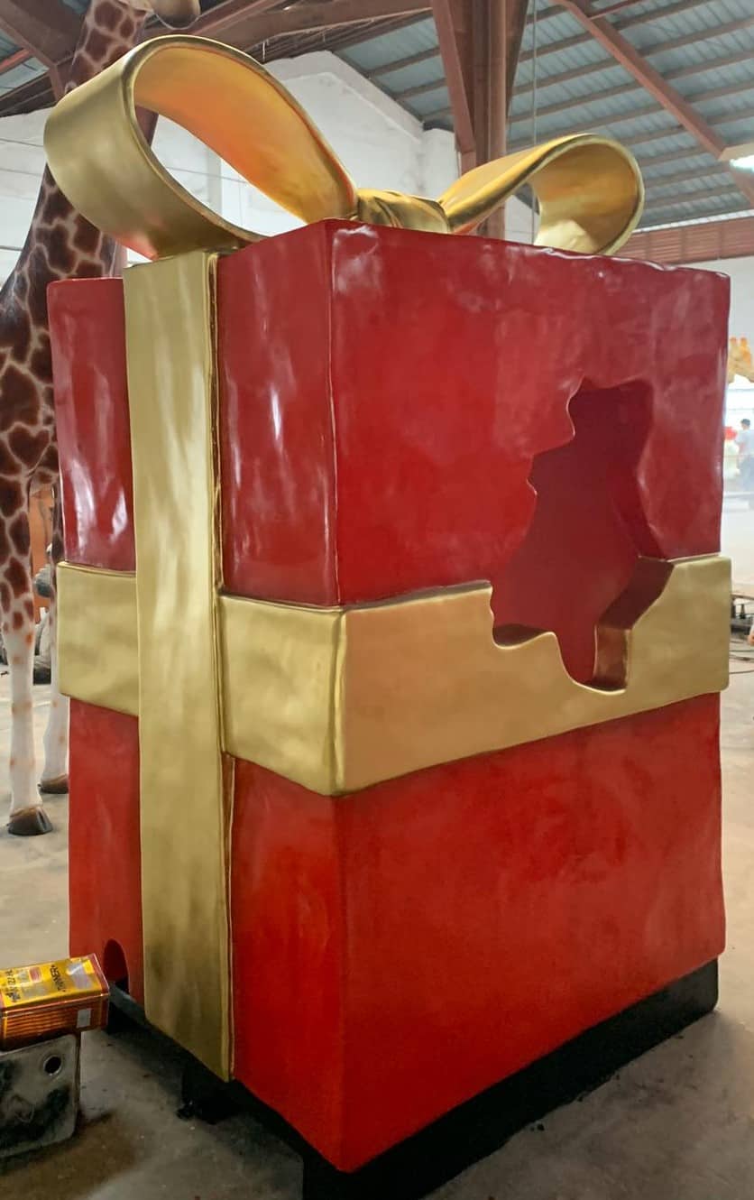 קופסת מתנה ענקית לצילומים עשויה מפיברגלס ומתנשאת לגובה 260.